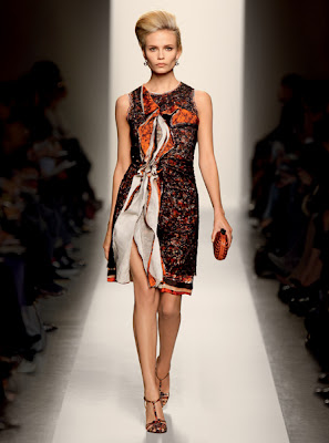 Esta Primavera, Bottega Veneta es superficie y va de la mano como punto de partida para un paseo por los exuberantes y extraordinarios materiales, acabados inusuales, y las impresiones exageradas. La gama de colores vivos y saturados se centran en tonos exuberantes de la turmalina,colores oscuros, y el añil. Sangre roja, verde irlandés, naranja quemado, el yeso, y marrón chocolate aumentan el estado de ánimo vibrante. La silueta es arquitectura rigurosa, pero sensual, una combinación de ángulos y líneas de fluido a medida que se mantenga cerca del cuerpo. Las formas son ilusorias, con capas de tela alterar la línea aparente de un vestido o falda para que a primera vista da lugar a una segunda mirada.Veamos los vestidos de Bottega Veneta: